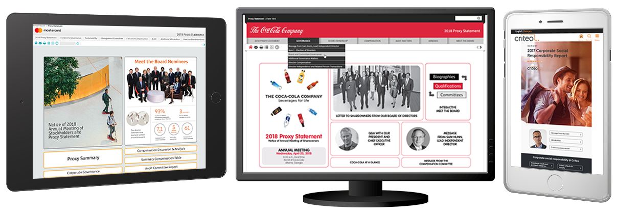 EZOnlineDocuments has been enhancing shareholder communication since 1998. By providing Interactive Documents with enhanced features, we can replace the PDF version of your important documents to make your Annual Reports, 10-Ks, Proxy Statements, Sustainability Reports, and more accessible to all your investors and clients. See the articles listed below for our studies on points of interest or use our menu system to find our products and features you are interested in, then contact us today for a free consultation for your project.
